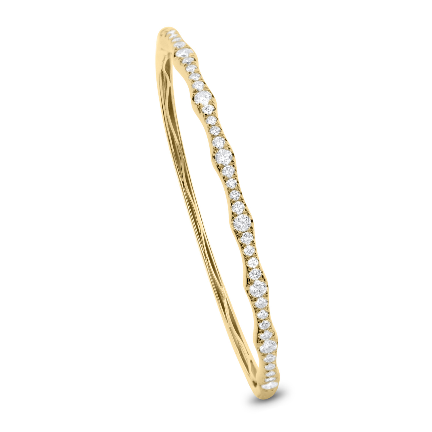 Our diamond bracelet designs that are bound to leave everyone you encounter speechless with desire. The shape of chic. A textured finish gives diamond bangle a fresh, modern dimension. Crafted in 18k gold.
