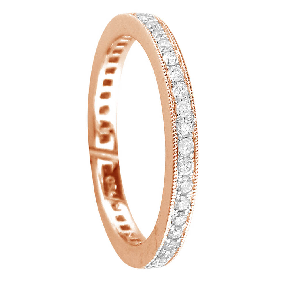 Dazzling circle shape makes one unforgettable and unique band. Set in 18kt Gold with 0.36 carats of round diamonds, this diamond band is marvelous. From timeless classics to vintage, find your perfect fit with your favorite diamond shape.