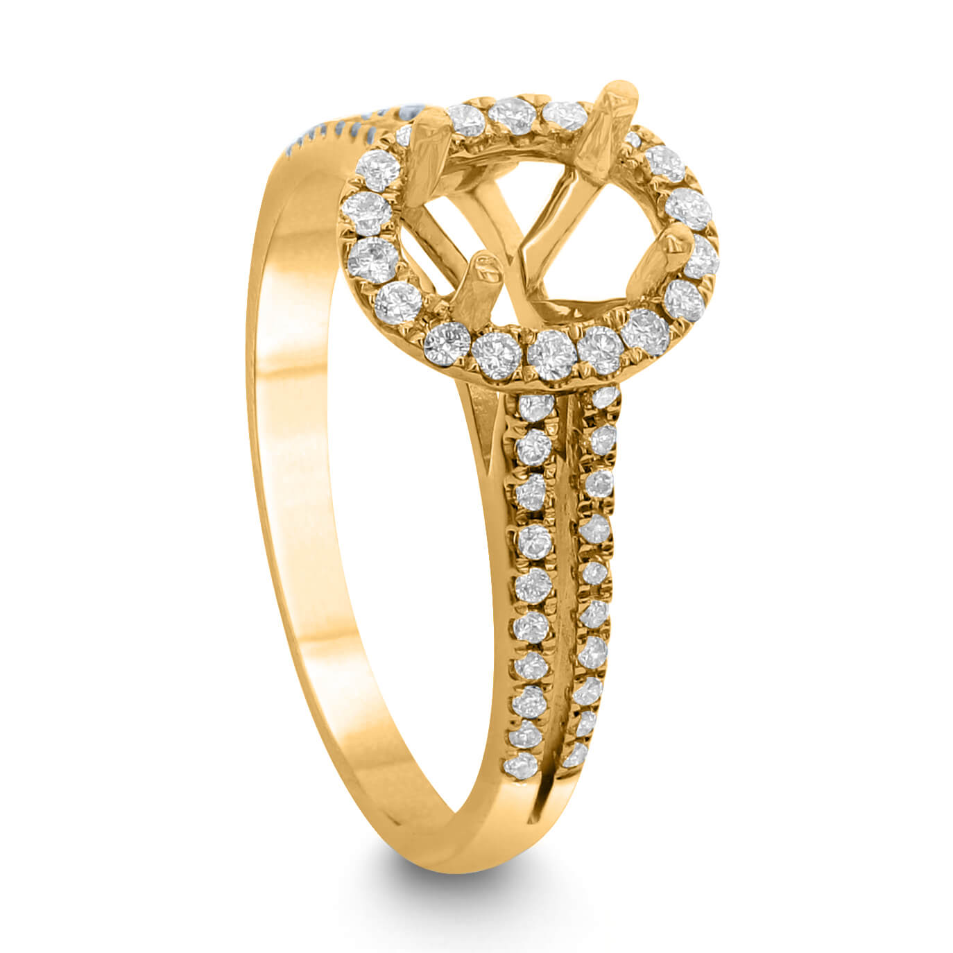 Exceptional and fabulous designs are embossed in the timeless antique ring settings or art deco diamond settings. Our Classic Diamond Ring created in 18kt Gold features an elegant shape. Get the promising 0.38 CT Halo Diamond Semi Mount Oval Shape Ring for your special moments.