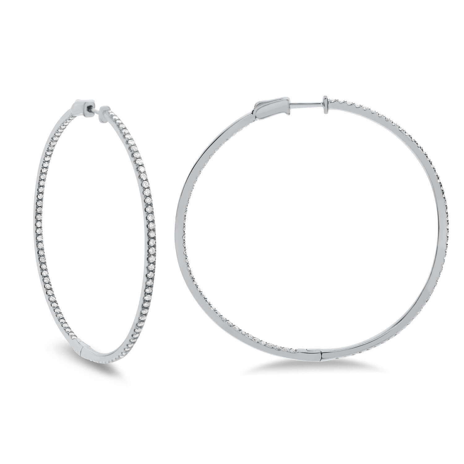 Warm gold discs reflect the fire and brilliance of these hoop earrings. Mounted in 14kt Gold setting to show off the sparkle with 1.91 Carat Diamond Hoop Earrings. Long circle earrings or hoop earrings will do the trick.