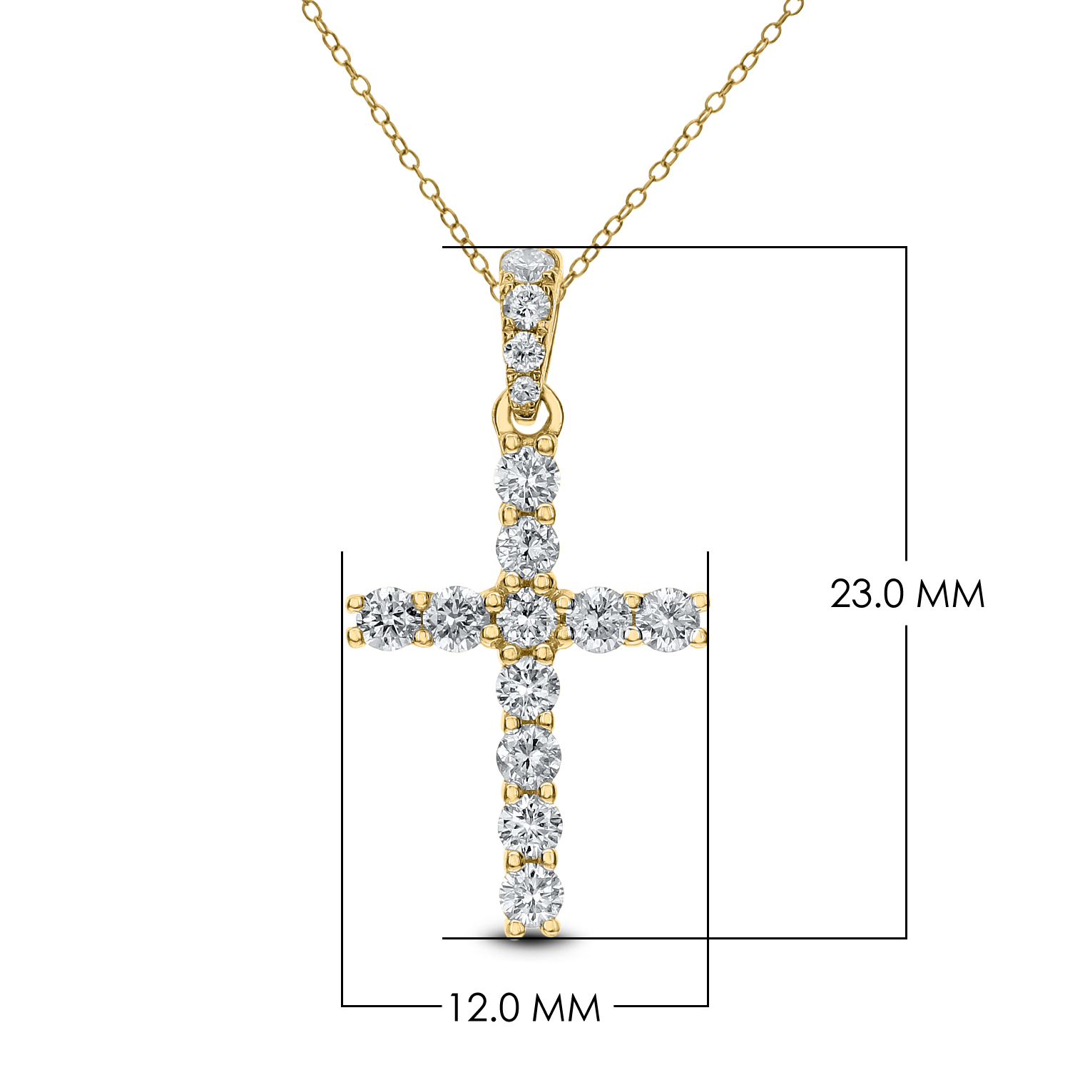 A lovely Diamond Cross Pendant featuring round diamonds set in a 18 KT Gold setting. Across her heart… a special cross pendant sparkling bright with round-cut diamonds.