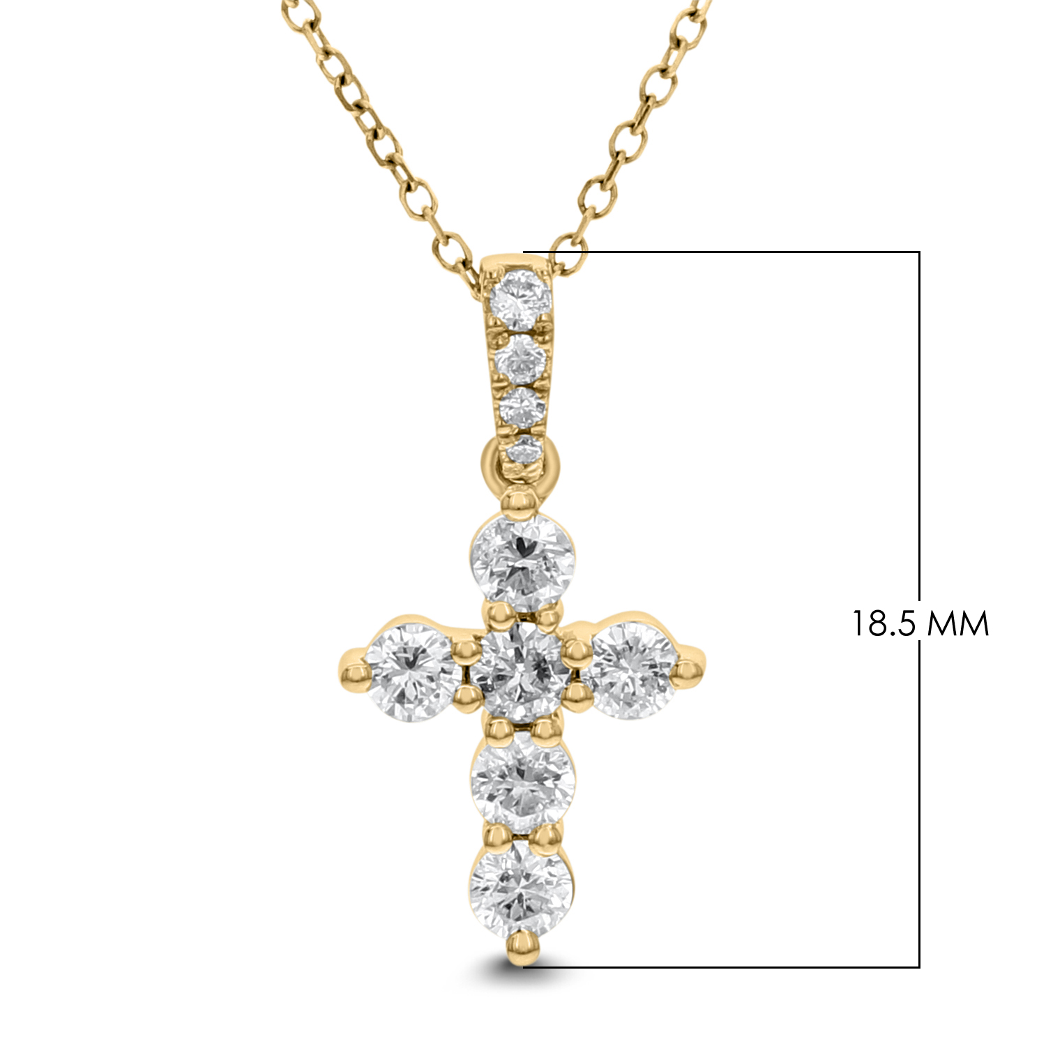 Dainty shimmer exudes from this awe-inspiring round-shape diamond cross pendant necklace exquisitely fashioned in 18k gold. Our 0.50CT Diamond Cross Pendant is above all traditional styles and highlights your spirituality.