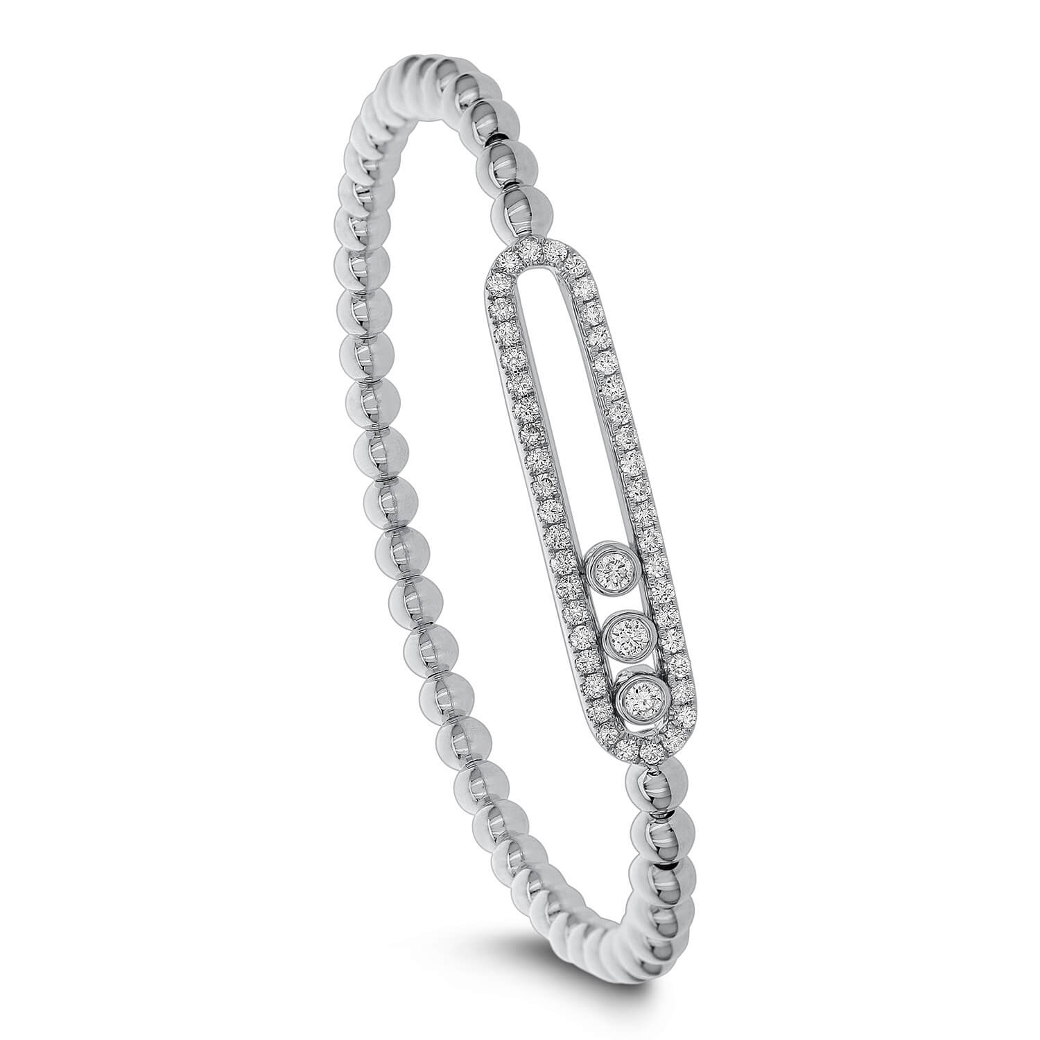 It requires a bizarre taste and an atypical bend of mind to artistically put together precious gems and metals and develop an extremely charming and alluring jewelry piece. Discover the playful elegance of the Diamond bracelet, sparkling with a 0.80CT diamond bezel-set in romantic 18kt Gold.