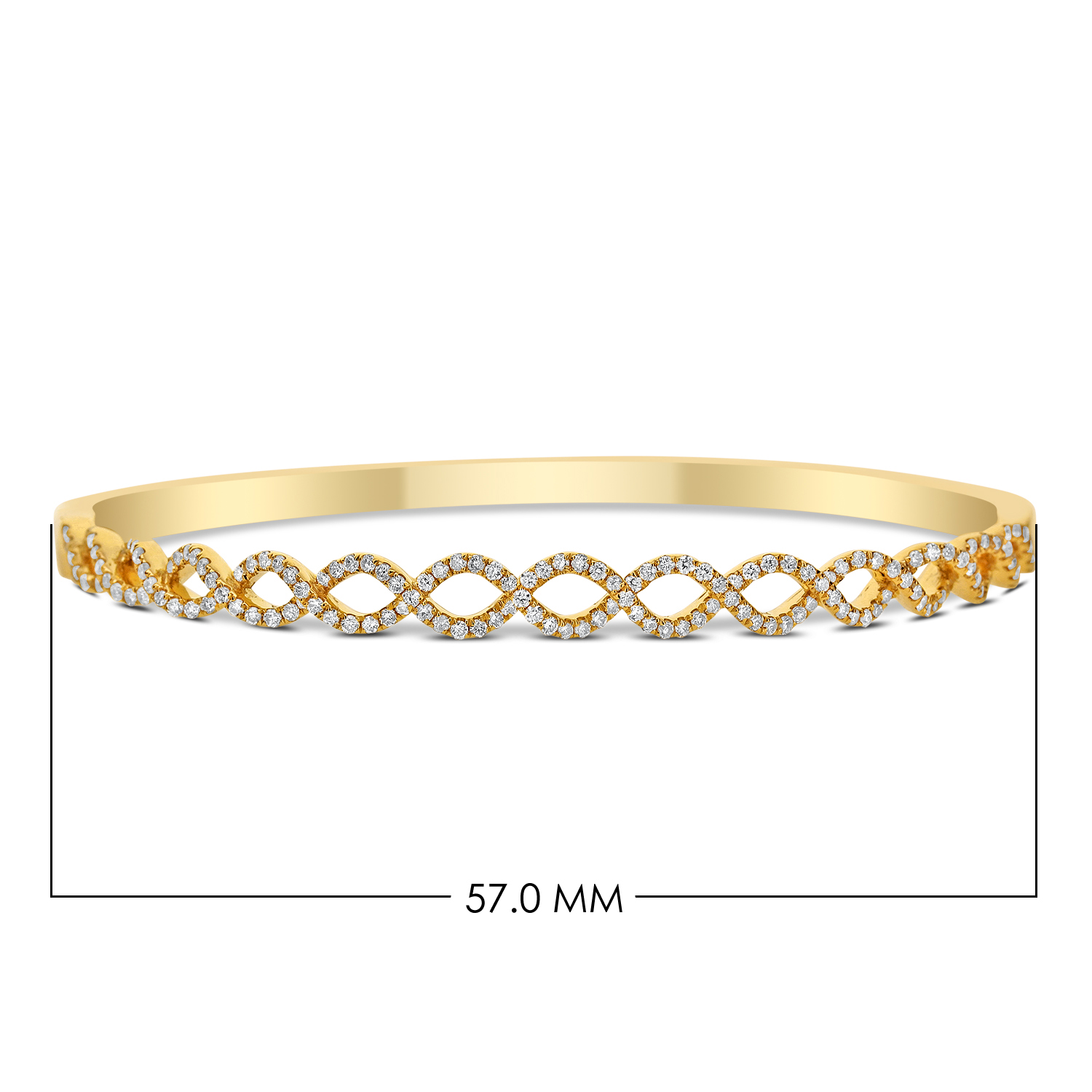 Our stunning diamond bangle with a twisted design having diamonds in round pattern and this piece has everything that you are looking for. A stationed diamond is paired with a twist design for a sophisticated look.