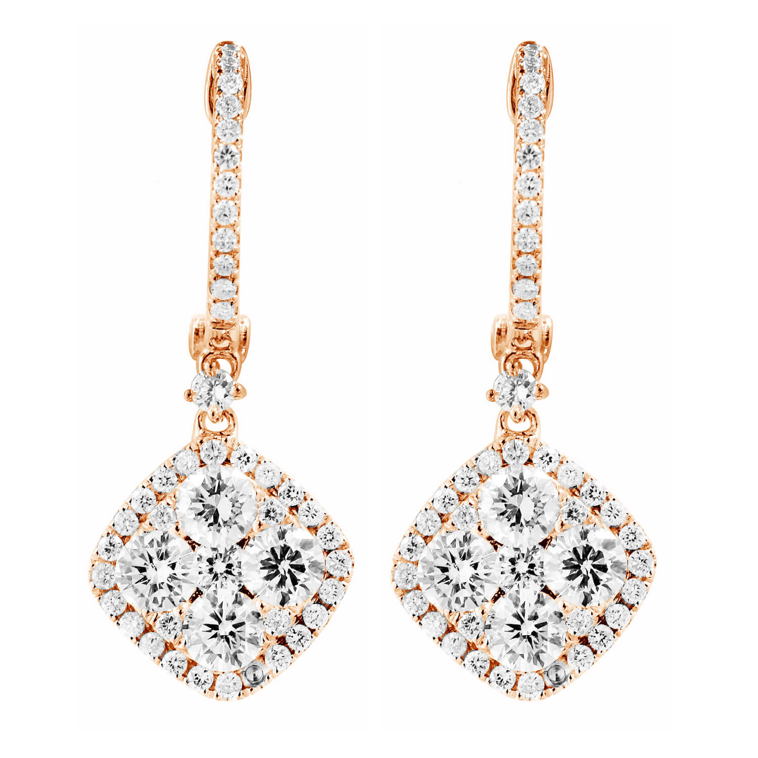 One of our dangle earrings for working woman are Diamond Shape Earrings. Set in pure 18 kt Gold and shaped in a perfect diamond cluster, the dangle earrings use diamonds to embellish each earring.