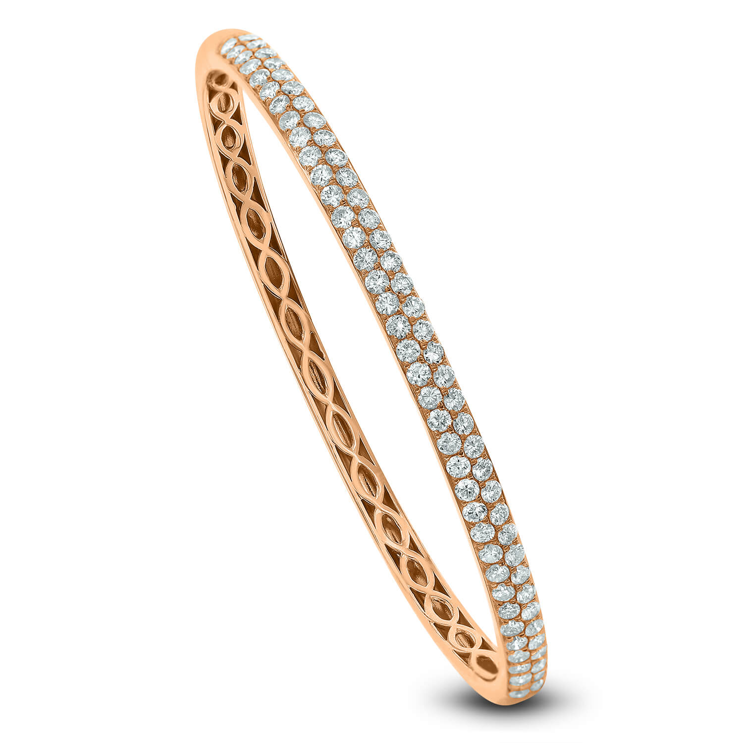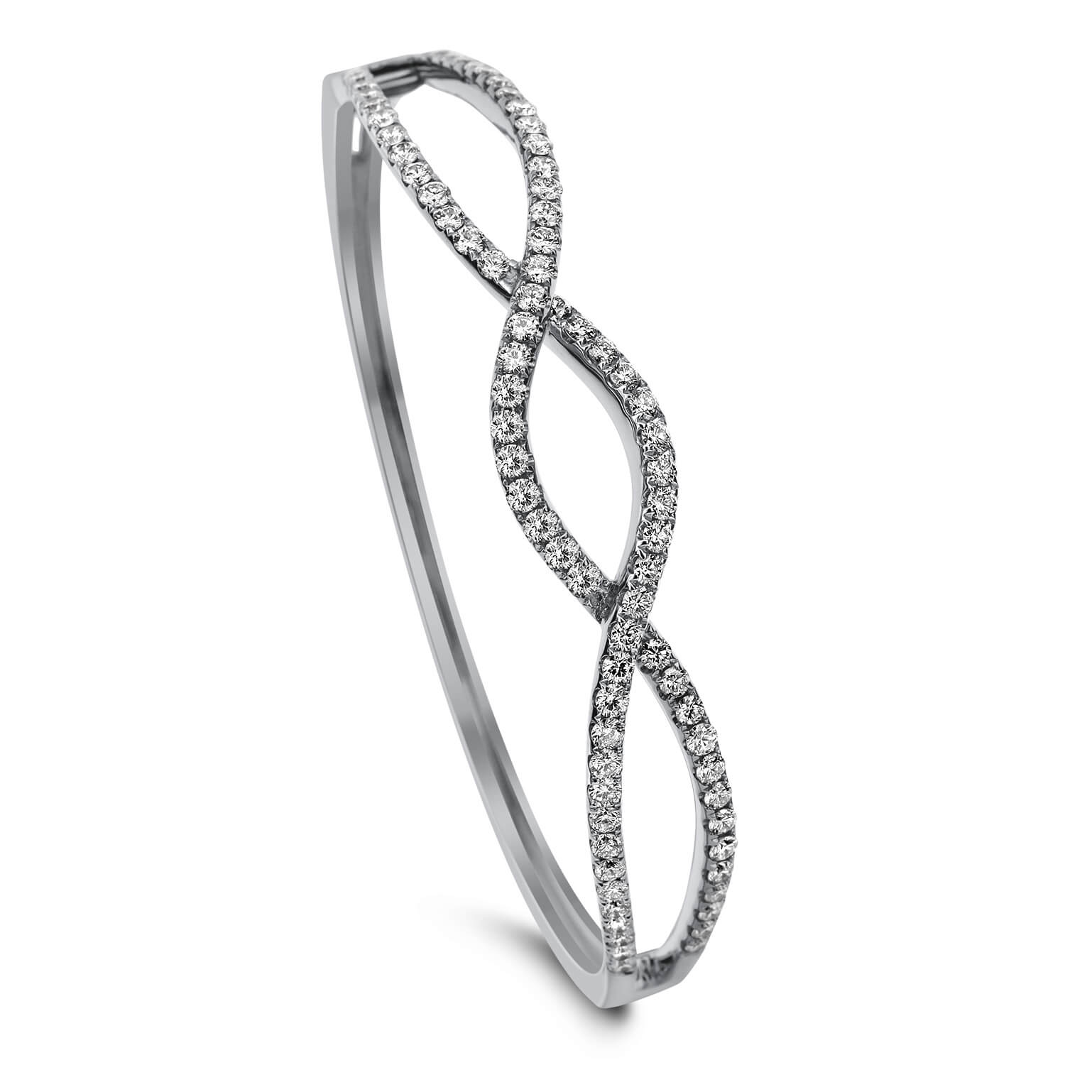 This twisted bangle adds shimmer and texture to any outfit. A fusion of cool sparkle and the warm opulence of 18kt Gold, these twisted bangle feature stylish Gold and smooth round diamonds.