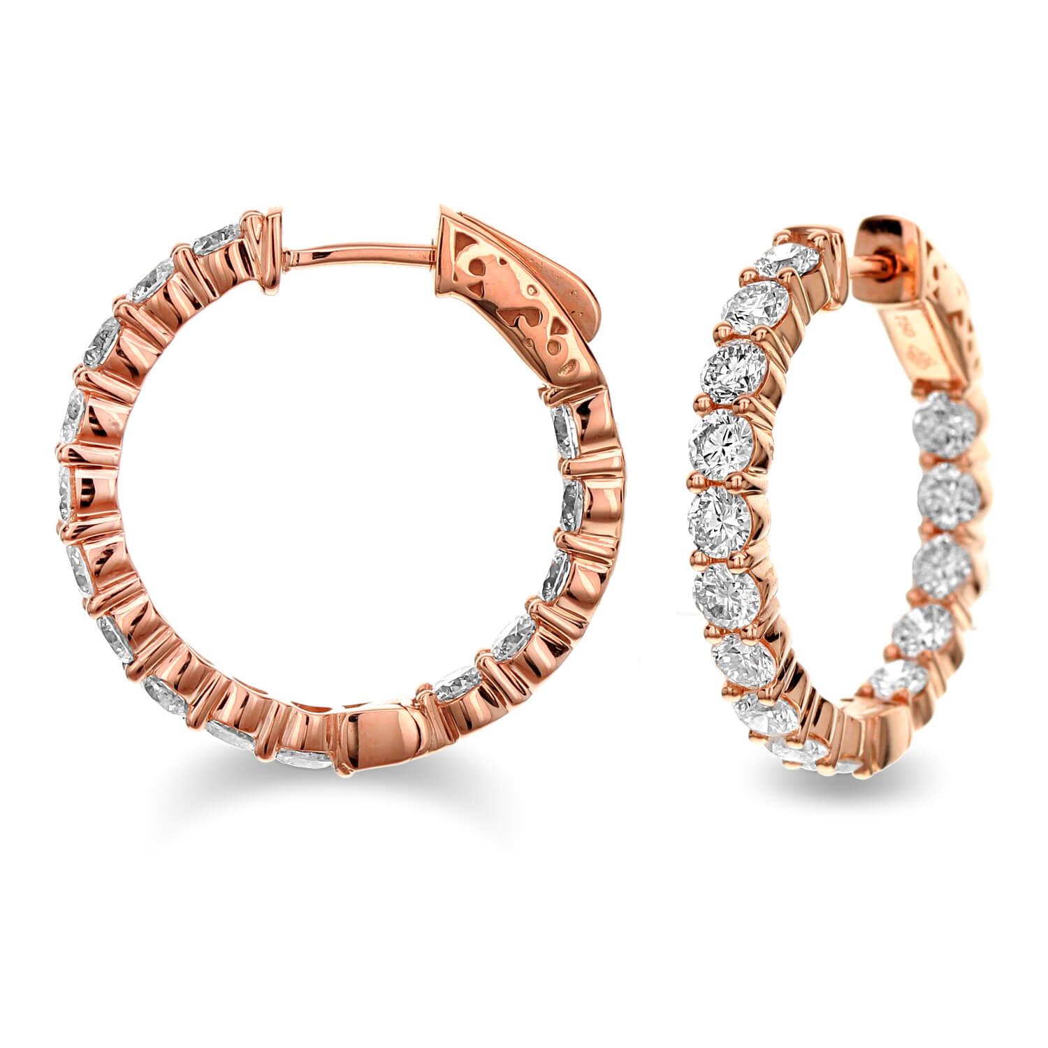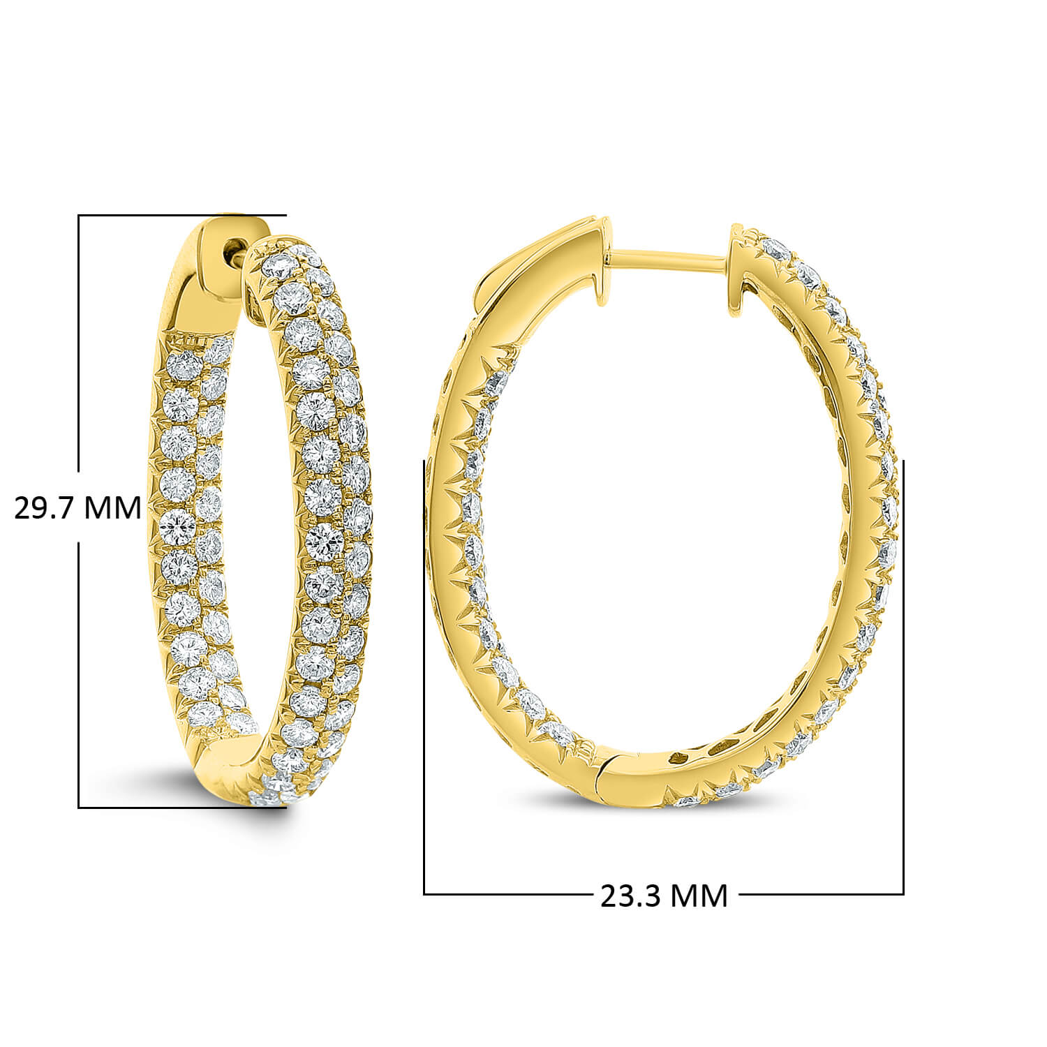 A typical design with a modern twist, these double row hoop earrings are just what you require to dress up your look! Two rows of round-cut diamonds, all set in 18K Gold. Elevate her apparel with the glisten of these dainty 3.00 carat diamond double row hoop earrings.