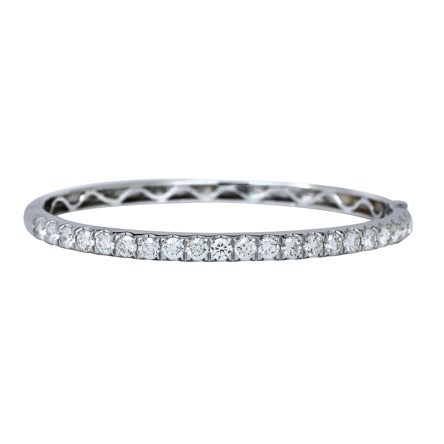 The sparkling stuff dreams are made of. This exquisite diamond bangle features a line of brilliant shining round-shape diamonds set in gleaming 18k gold. Our 4.95 CT Studded Diamond Bangle is among finest piece of diamond jewelry.