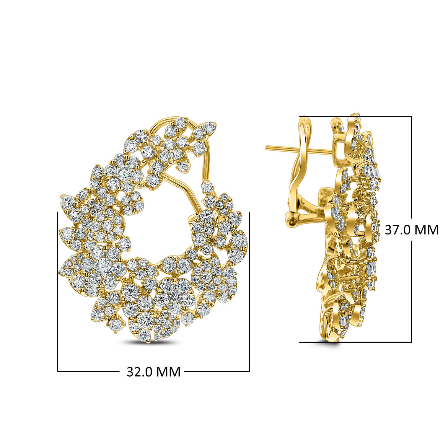Our hoop earrings highlight a jewel group plan with round precious diamonds totaling 8.00 Carat. Particular style and obscure workmanship make these earrings a genuine artful masterpiece. This great round precious hoop earrings include a dash of allure in 18KT Gold.