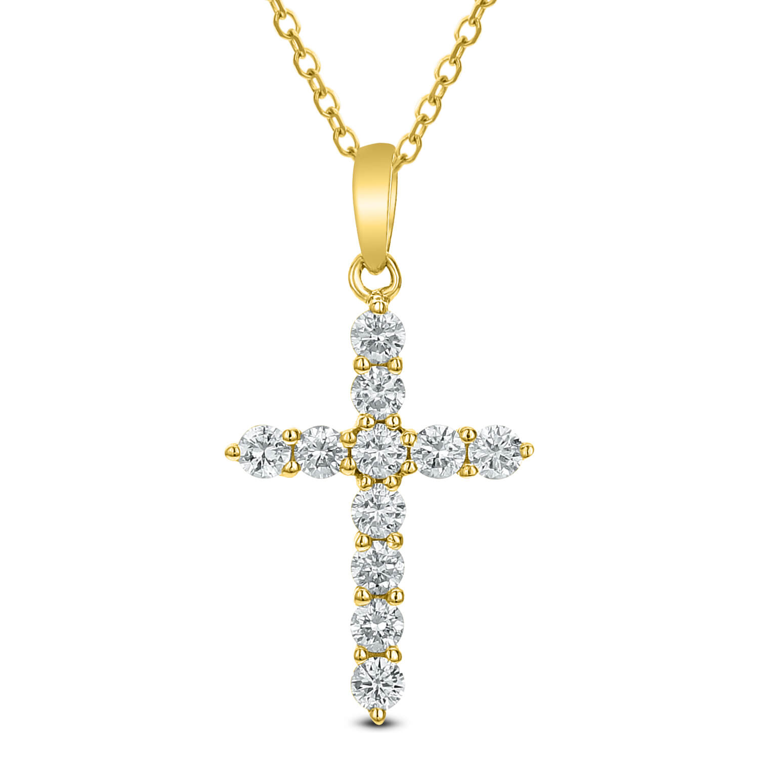 Admirable diamond stone design cross pendant owns an exquisite expression. It includes a jewel framing a religious image for spirituality. This diamond cross pendant comprises 0.33 Carat loved Diamond and 18KT Gold. This pendant can be worn or presented on any event.