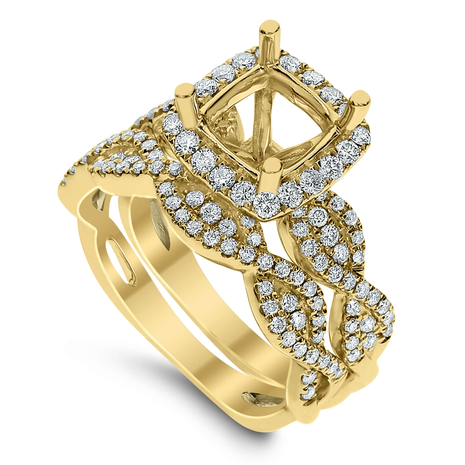 18KT 0.80 CT Halo Diamond Semi Mount Twisted Ring Set