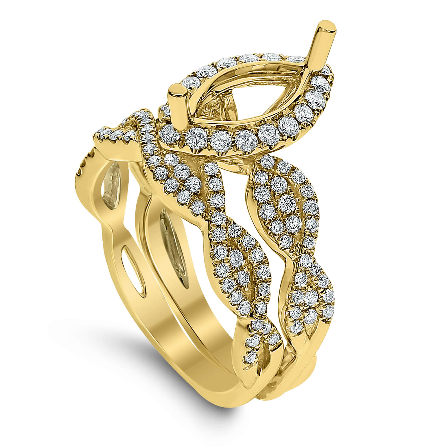 18KT 0.80 CT Diamond Semi Mount Twisted Marquise Ring Set